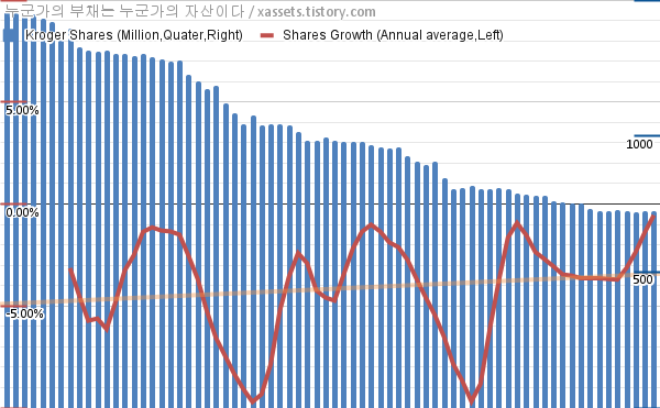 - 지난 1년 동안 크로거는 평균 0.55%의 자사주를 매입-소각했다.