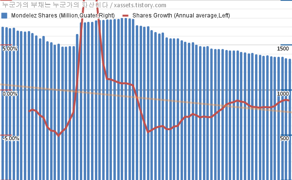 몬델리즈 자사주 매입 소각 차트 (2005년~2024년)