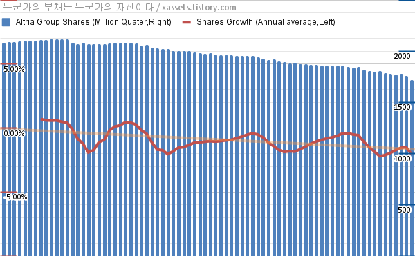 - 지난 1년 동안 알트리아 그룹은 평균 2.02%의 자사주를 매입-소각했다.