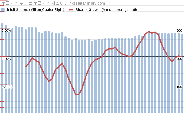 - 인튜이트의 사실상 유일한 단점은 아직 자사주를 꾸준히 줄이는 주식이 아니라는 것이다.