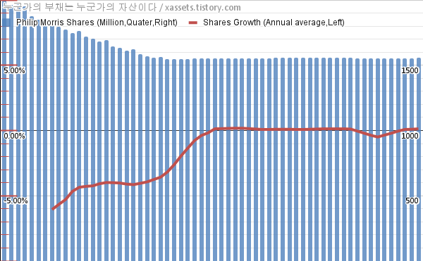 - 지난 1년 동안 필립모리스는 주식수가 약 0.13% 증가했다.