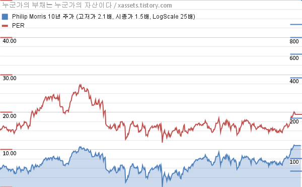 필립모리스 PER 차트 (2014년~2024년)