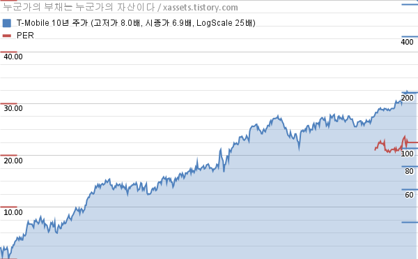 - T모바일의 10년 평균 MDD는 -5.75%고, 52주 최저가 대비 평균 상승률은 31.09%다.