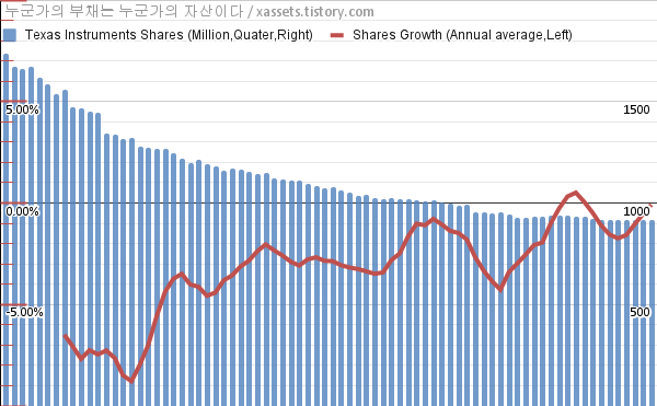 - 지난 1년 동안 텍사스 인스트루먼트는 평균 0.08%의 자사주를 매입-소각했다.