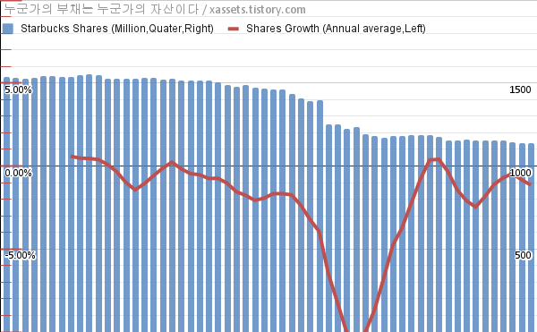 - 지난 1년 동안 스타벅스는 평균 1.15%의 자사주를 매입-소각했다.