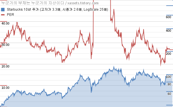 스타벅스 PER 차트 (2014년~2024년)