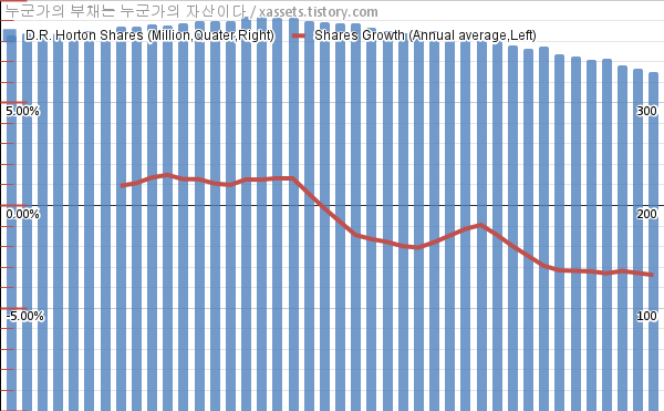 - 지난 1년 동안 D.R. 호튼은 평균 3.38%의 자사주를 매입-소각했다.
