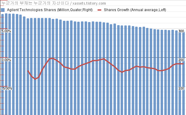 애질런트 테크놀로지스 자사주 매입 소각 차트 (2012년~2024년)