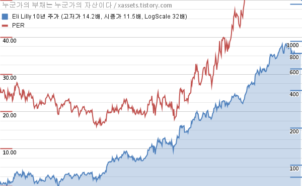 - 포스팅일 기준, 엘리 릴리의 1, 3, 5, 10년 연평균 주가상승률은 38.23%, 50.17%, 46.74%, 27.57%이다.