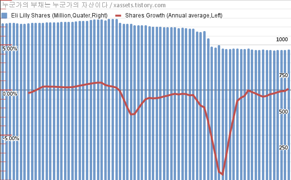 - 지난 1년 동안 엘리 릴리는 주식수가 약 0.14% 증가했다.