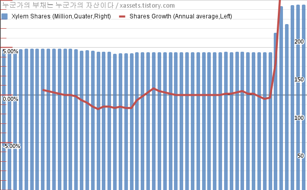 - 지난 2025년 2월 4일에 자일럼 Xylem (NYSE:XYL)이 배당금 증액을 공시했다. 분기당 배당금이 $0.36에서 $0.4로 전 분기 대비 11.11% 증가하고, 연간 지급 배당금도 전년도 대비 11.11% 증가한다.