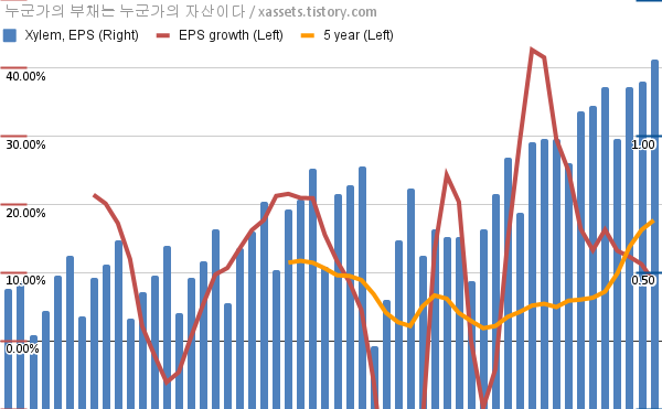 - 포스팅일 기준, 자일럼의 1, 5년 연평균 EPS 성장률은 8.64%, 17.68%이다.