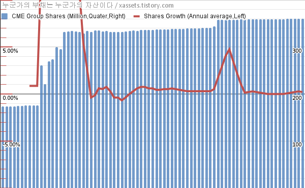 - 지난 1년 동안 시카고 거래소 그룹은 주식수가 약 0.21% 증가했다.