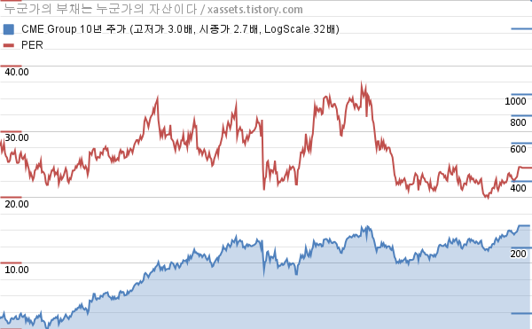 시카고 거래소 그룹 PER 차트 (2015년~2025년)