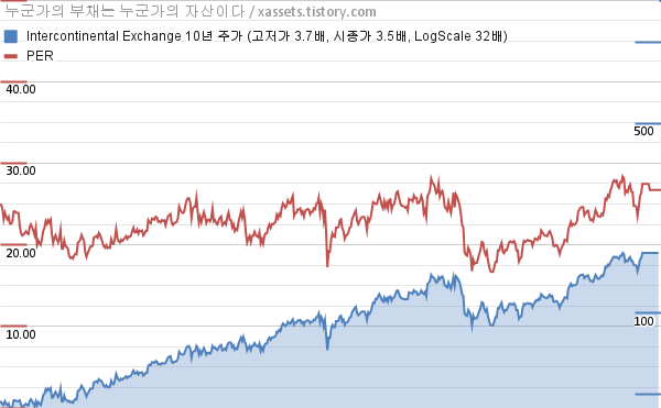 인터컨티넨털 익스체인지 PER 차트 (2015년~2025년)