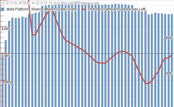 메타 플랫폼스 자사주 매입 소각 차트 (2012년~2024년)