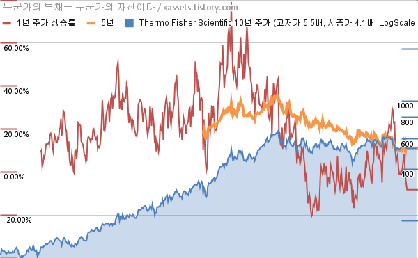 - 포스팅일 기준, 써모피셔 사이언티픽의 1, 3, 5, 10년 연평균 주가상승률은 -8.22%, -1.13%, 11.19%, 15.30%이다.