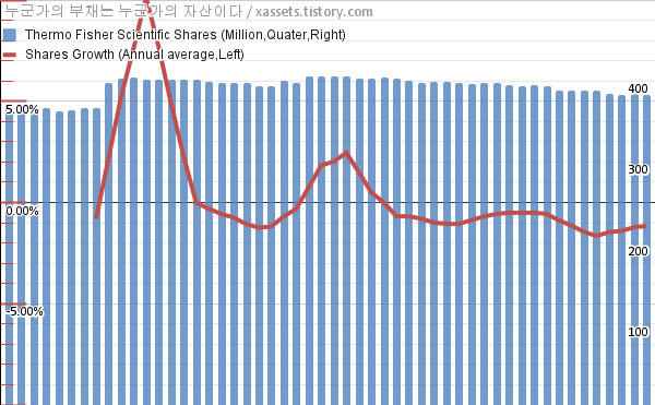 - 지난 1년 동안 써모피셔 사이언티픽은 평균 1.16%의 자사주를 매입-소각했다.