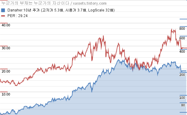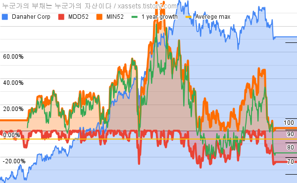 - 다나허의 10년 평균 MDD는 -6.39%고, 52주 최저가 대비 평균 상승률은 29.10%다.
