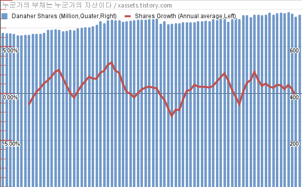 - 지난 1년 동안 다나허는 평균 0.47%의 자사주를 매입-소각했다.