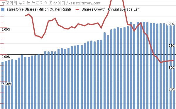 - 지난 1년 동안 세일즈포스는 평균 1.07%의 자사주를 매입-소각했다.