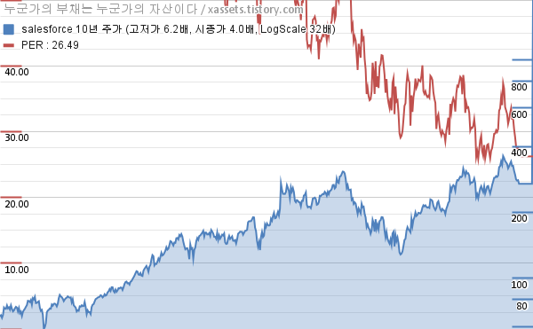 - 세일즈포스의 포스팅일 기준 PER은 26.24이다.