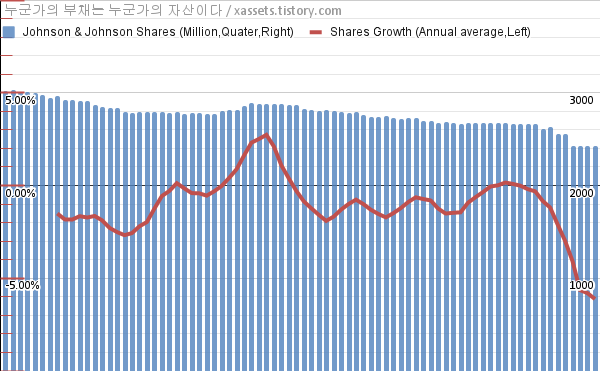 - 지난 1년 동안 존슨앤존슨은 평균 6.12%의 자사주를 매입-소각했다.