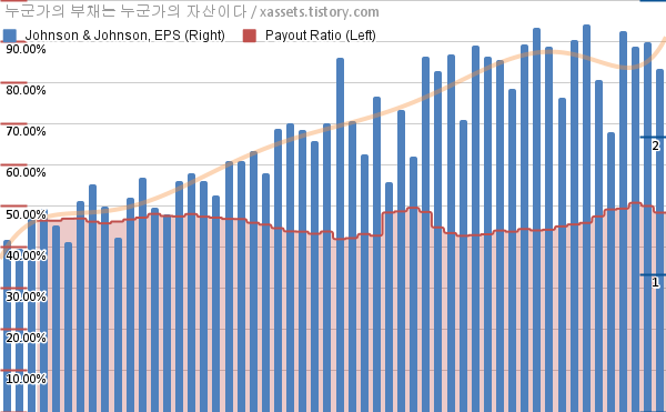 - 존슨앤존슨은 1963년부터 63년 연속으로 배당금을 증액하고 있다.