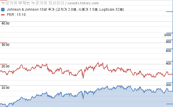 - 존슨앤존슨의 포스팅일 기준 PER은 15.34이다.