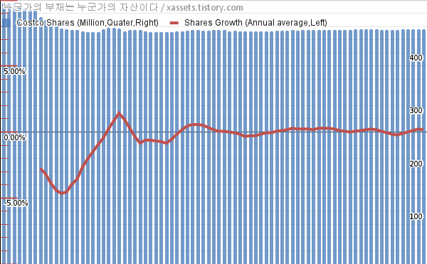 - 지난 1년 동안 코스트코는 주식수가 약 0.17% 증가했다.