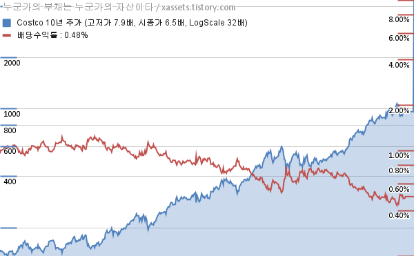 - 코스트코의 10년 평균 MDD는 -5.71%고, 52주 최저가 대비 평균 상승률은 31.77%다.