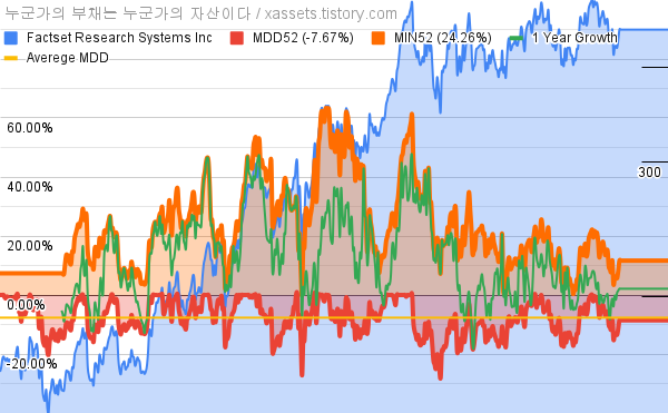 - 팩트셋 리서치의 10년 평균 MDD는 -7.67%고, 52주 최저가 대비 평균 상승률은 24.26%다.