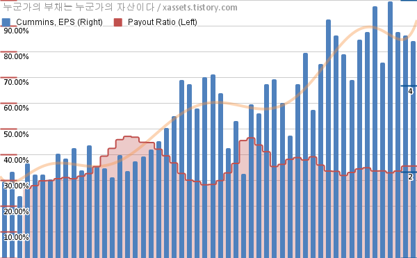 - 커민스는 2006년부터 20년 연속으로 배당금을 증액하고 있다.