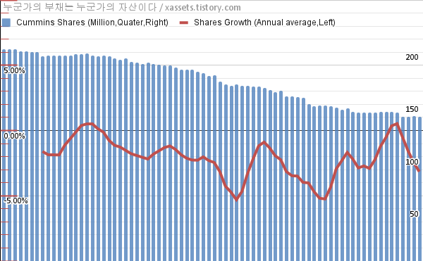 커민스 자사주 매입 소각 차트 (2006년~2025년)