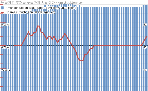 - 지난 1년 동안 아메리칸 스테이츠 워터는 주식수가 약 2.03% 증가했다.