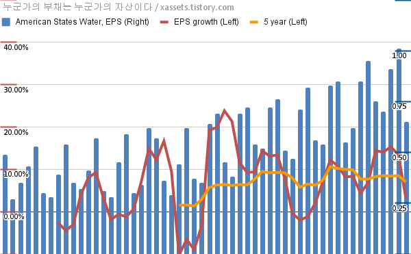 - 포스팅일 기준, 아메리칸 스테이츠 워터의 1, 5년 연평균 EPS 성장률은 3.15%, 7.01%이다.