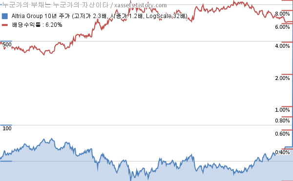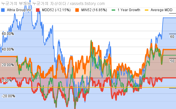 - 알트리아 그룹의 10년 평균 MDD는 -12.15%고, 52주 최저가 대비 평균 상승률은 16.85%다.