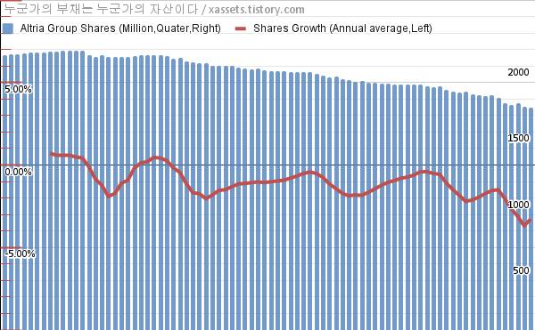- 지난 1년 동안 알트리아 그룹은 평균 3.29%의 자사주를 매입-소각했다.