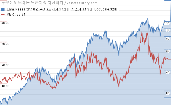 - 램리서치의 포스팅일 기준 PER은 21.80이다.