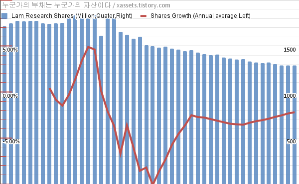 - 지난 1년 동안 램리서치는 평균 2.19%의 자사주를 매입-소각했다.