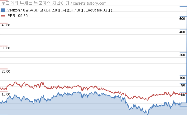 - 버라이즌의 10년 평균 MDD는 -9.68%고, 52주 최저가 대비 평균 상승률은 12.78%다.