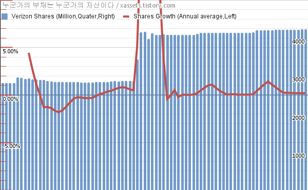 - 지난 1년 동안 버라이즌은 주식수가 약 0.18% 증가했다.