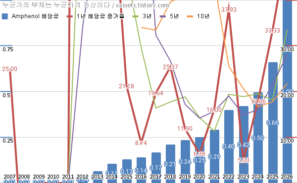 암페놀 배당금 및 배당성장률 차트 (2007년~2026년)