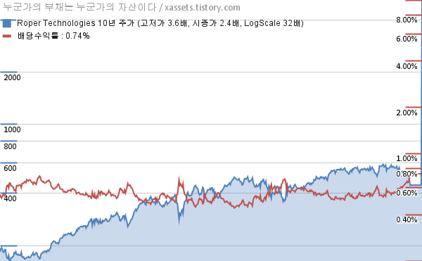 로퍼 테크놀로지스 배당수익률 및 주가 상승률 차트 (2015년~2025년)