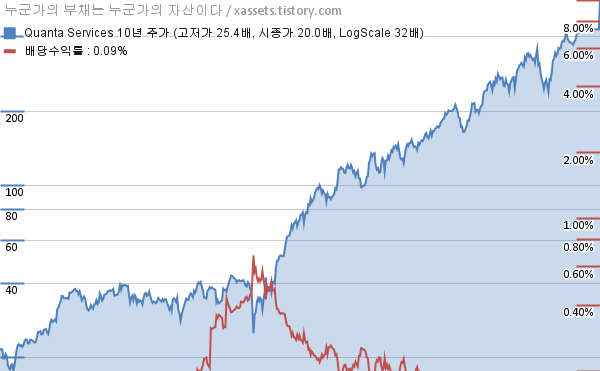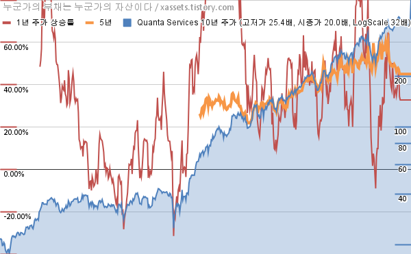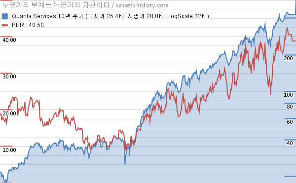 - 포스팅일 기준, 콴타 서비스의 1, 3, 5, 10년 연평균 주가상승률은 32.77%, 42.40%, 45.04%, 34.77%이다.