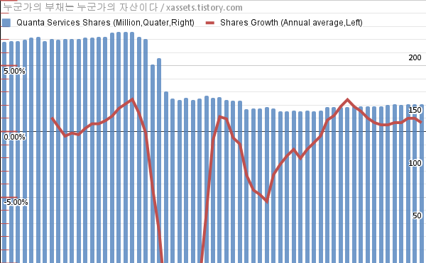 - 지난 1년 동안 콴타 서비스는 주식수가 약 0.67% 증가했다.