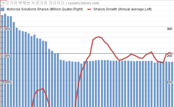 모토로라 솔루션스 자사주 매입 소각 차트 (2011년~2025년)