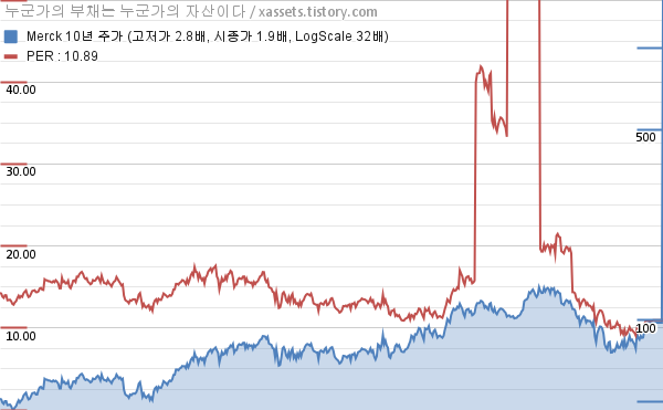- 머크(MSD)의 포스팅일 기준 PER은 10.89이다.