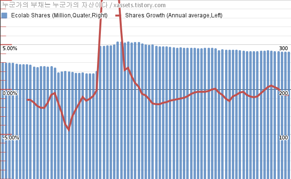 - 지난 1년 동안 에코랩은 평균 0.61%의 자사주를 매입-소각했다.
