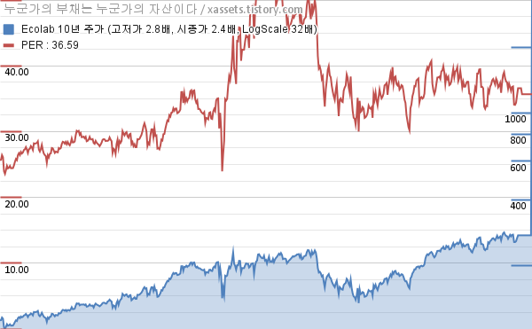 - 에코랩의 포스팅일 기준 PER은 36.59이다.